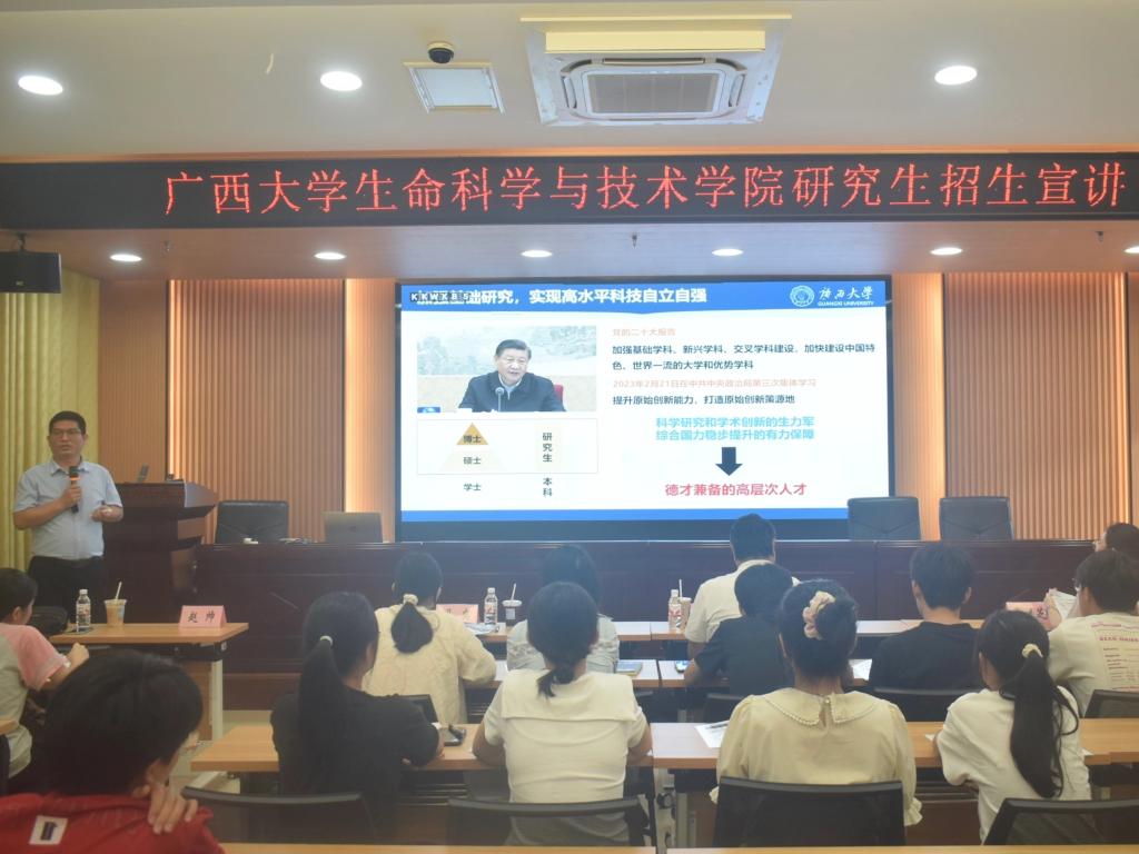 赵帅结合广西大学研究生培养工作,介绍了该校在研究生招生政策、培养体系建设、学科资源支撑等方面的特色优势,并结合当下招生工作重点开展针对性的招生宣讲。
