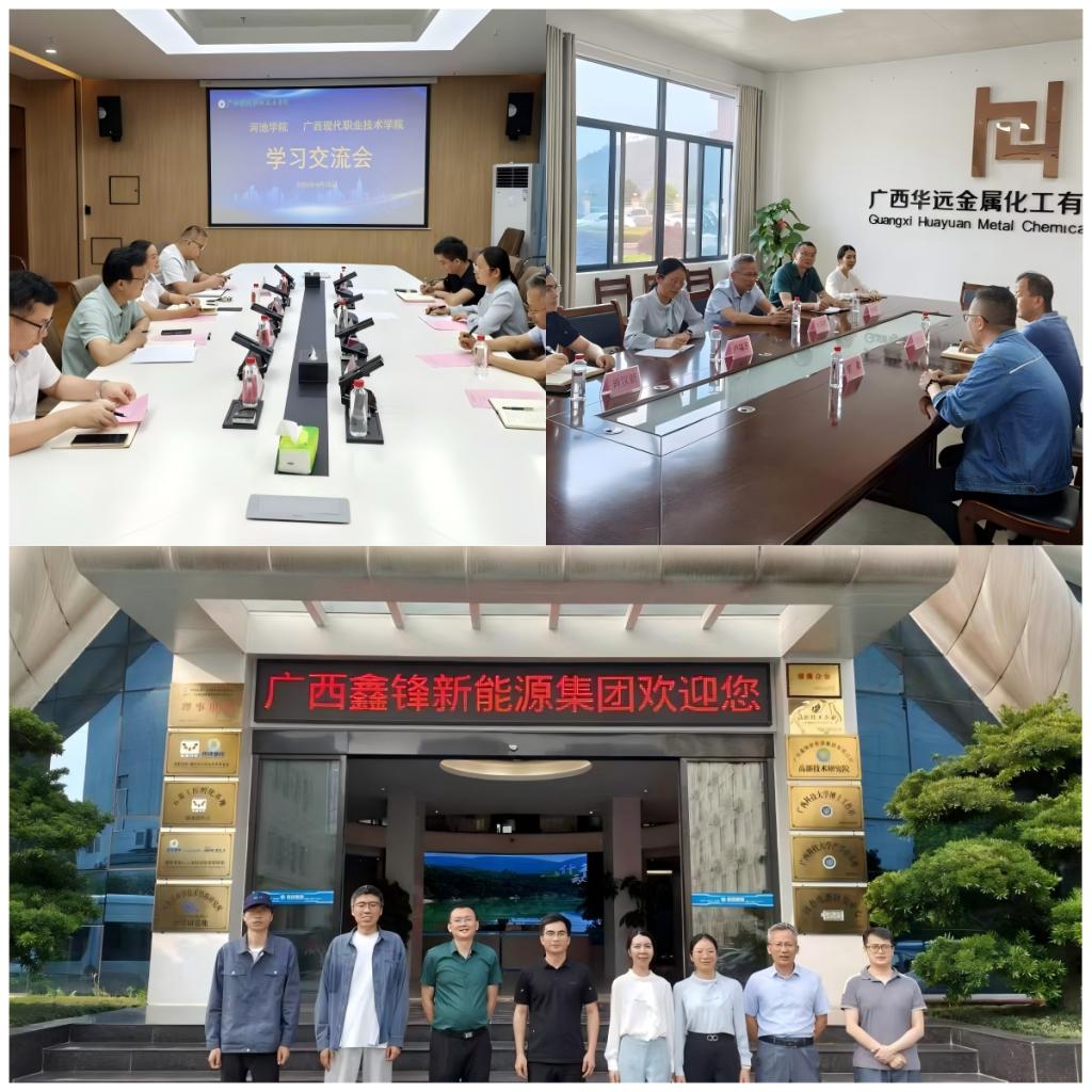 下午,调研组先后走访了位于河池经济技术开发区的广西誉升锗业高新技术有限公司、广西华远金属化工有限公司及广西鑫锋新能源集团。调研组一行与企业负责人就产教融合背景下的人才培养方案修订、实践教学基地共建、科研合作等议题进行了深入探讨,初步达成多项合作意向。调研组还实地考察了企业研发中心及检测分析实验室,围绕科研平台共建、学生实习安排及技术项目合作等事项交换了意见。